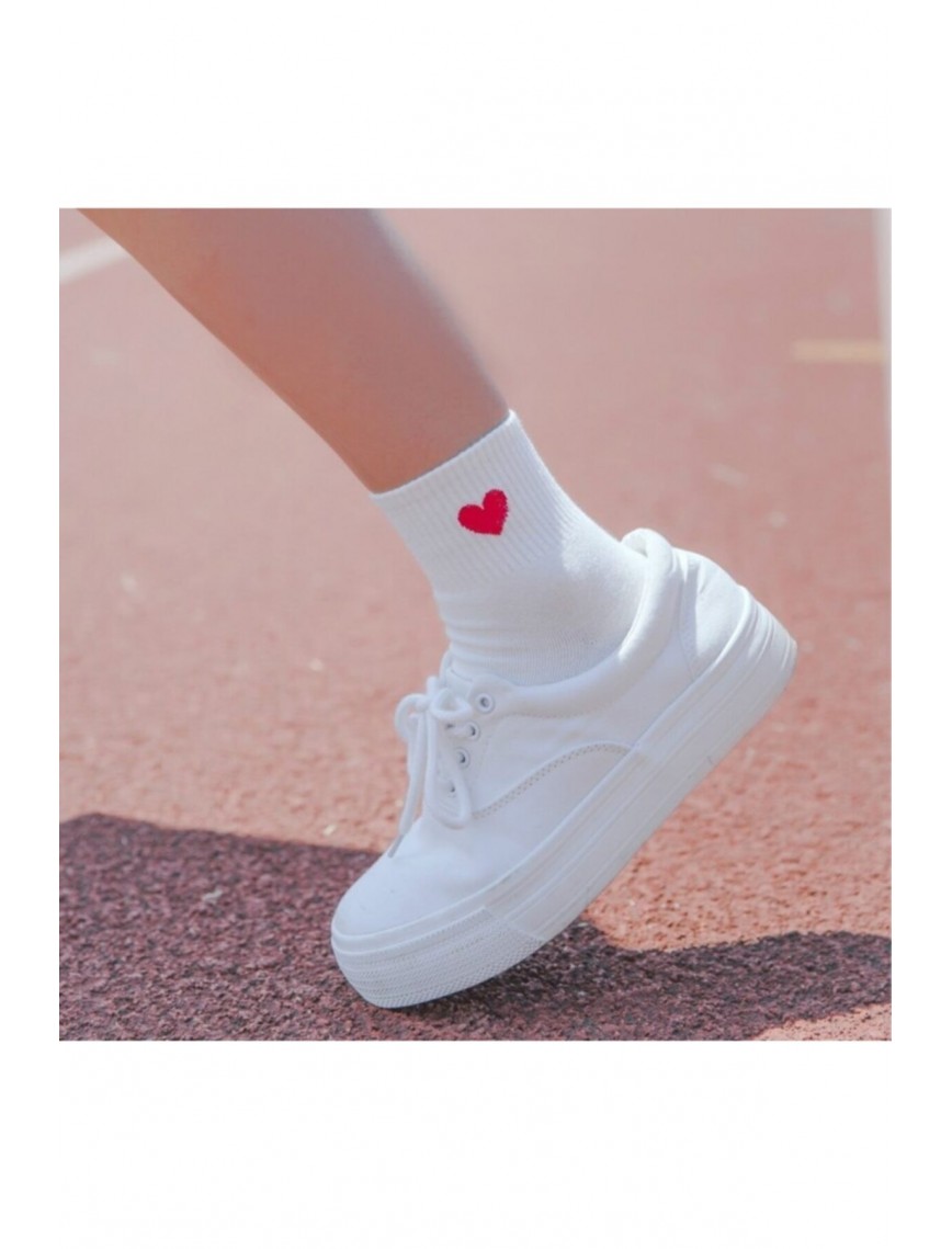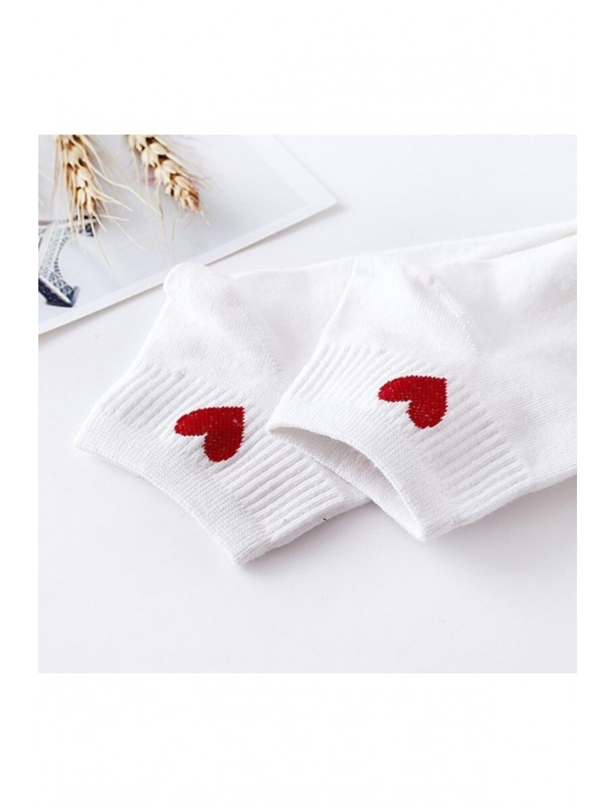 12 Çift Beyaz Kalp Desenli Yarım Konç Kadın Çorap