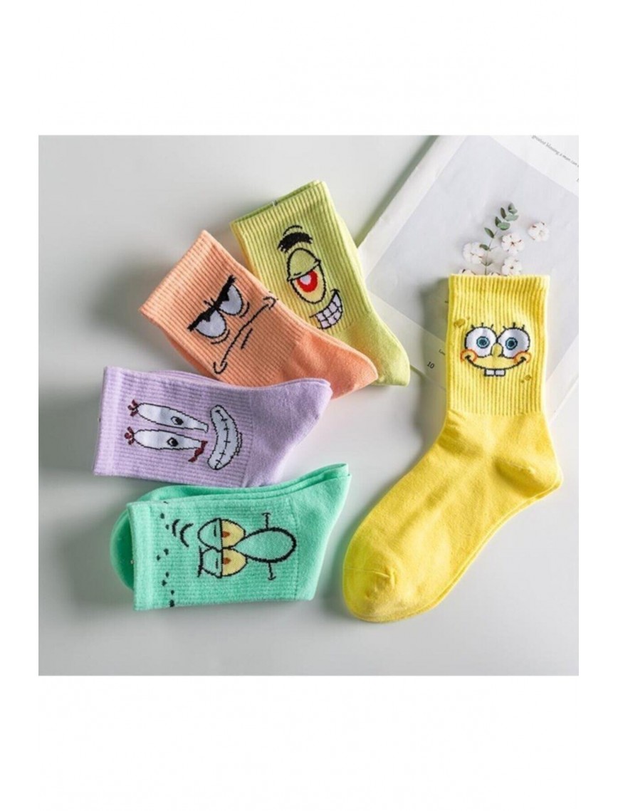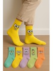 12 Çift Kadın Komik Yüz' Lü Çoraplar Surat Ifadeli Çok Renkli..