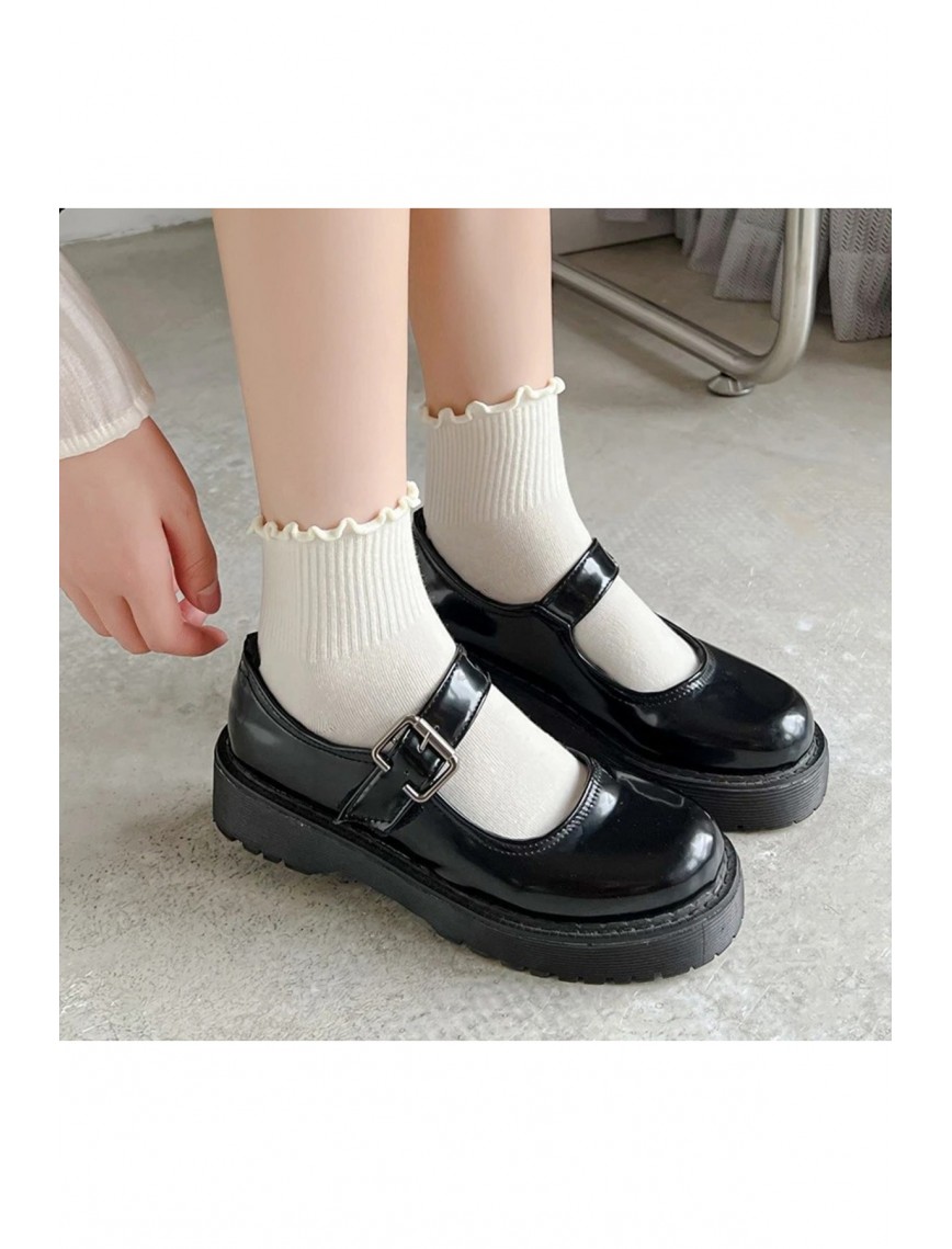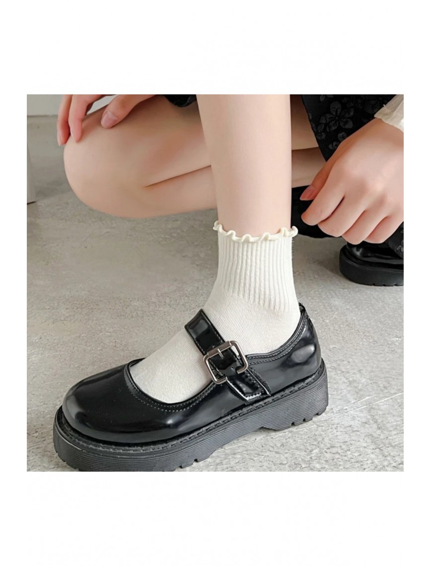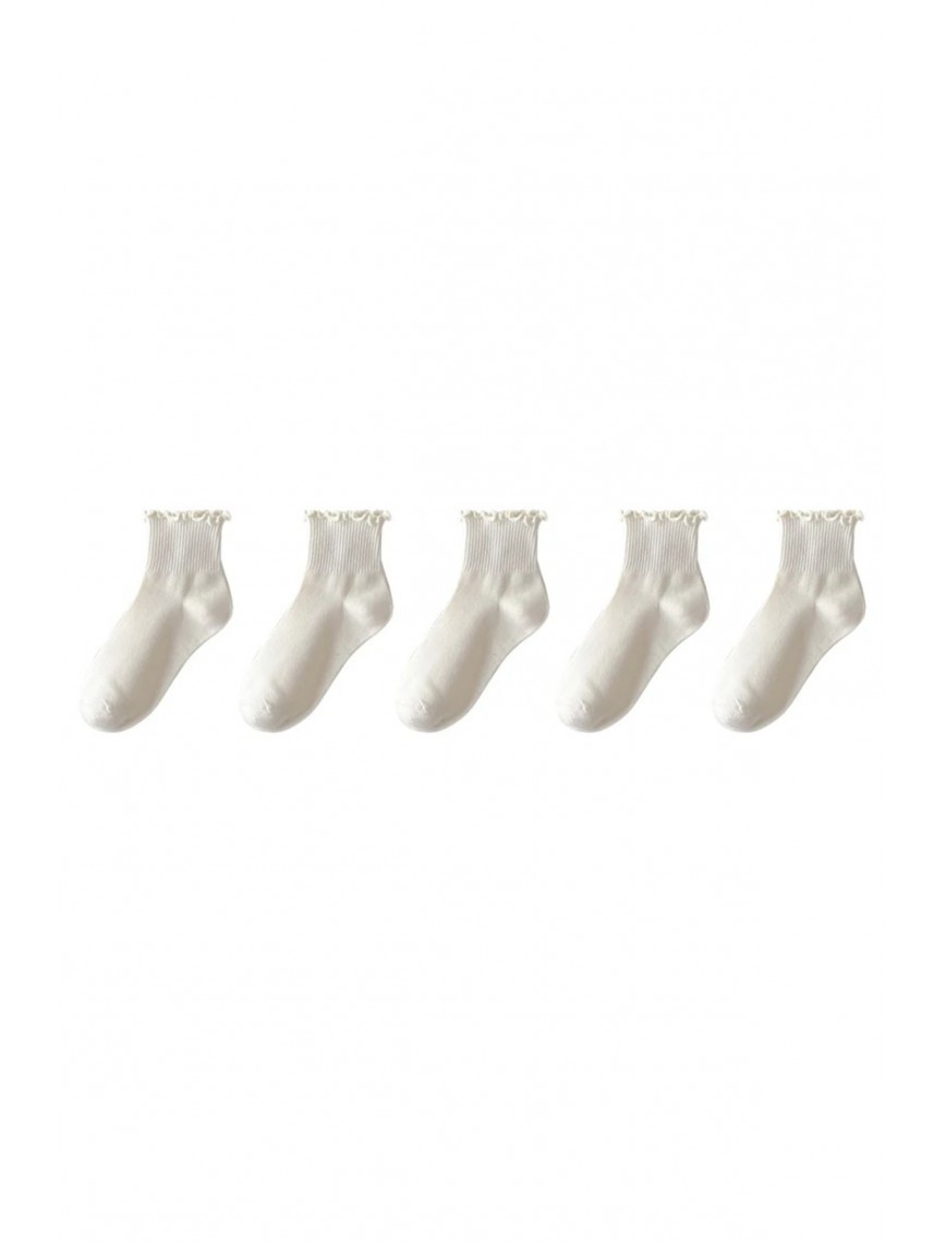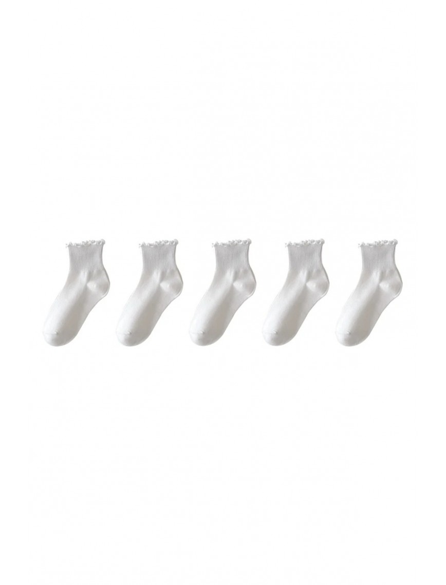 12 Çift Fırfır Desenli Kadın Krem Kolej / Tenis Çorap