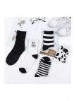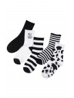 Kadın 5 Çift Siyah Beyaz Inek Desenli Çizgili Tenis Çorabı