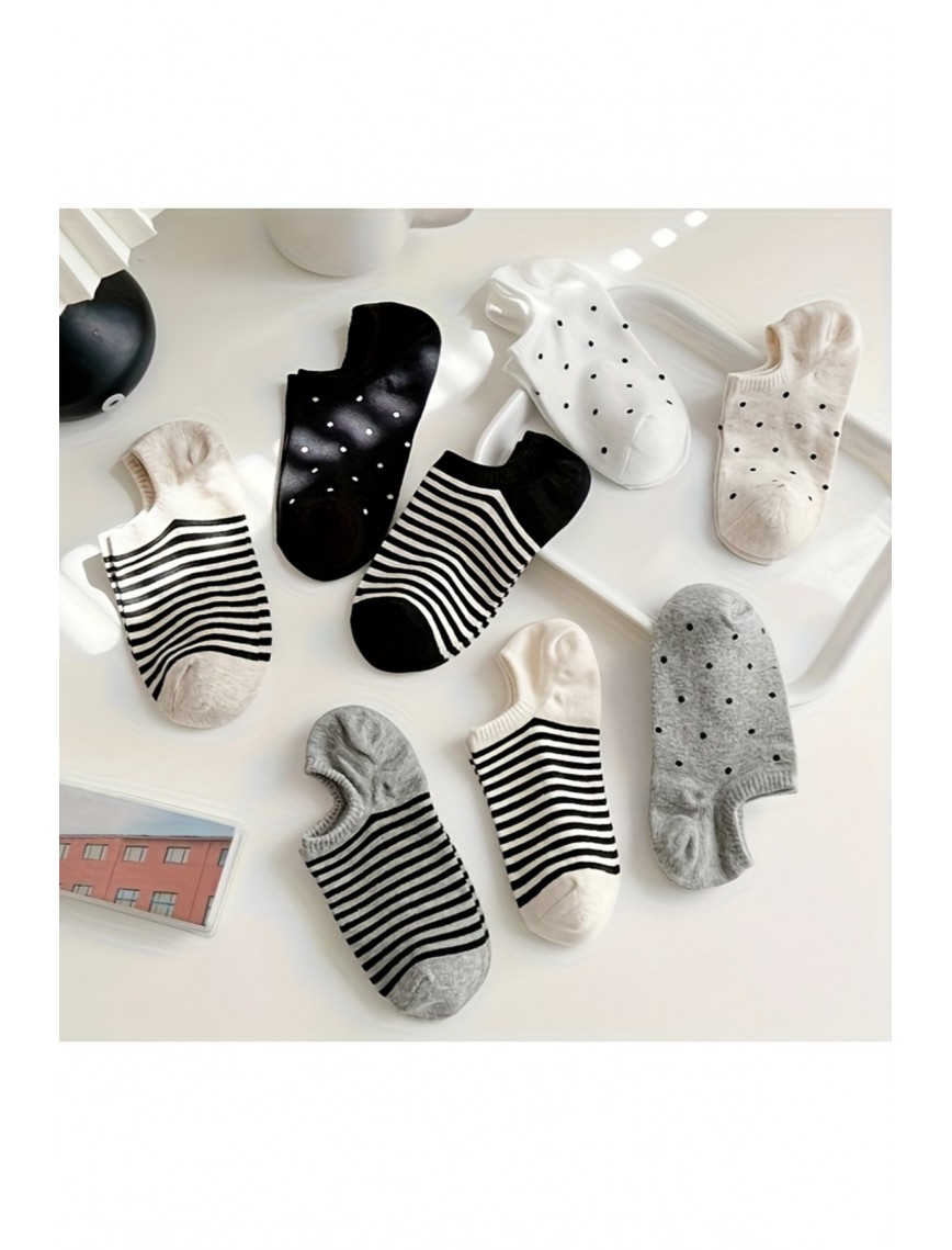 8 Çift Benekli - Çizgili Kadın Çok Renkli Görünmez Sneaker Çorap