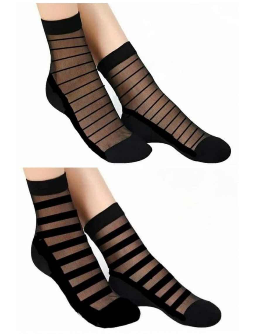 12 Çift Kadın Desenli Siyah Tül Çorap..